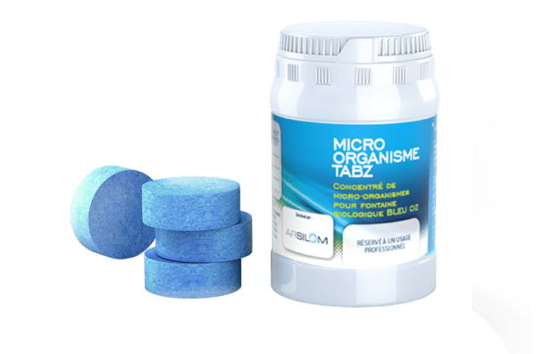 MODE D’EMPLOI :À la mise en place de votre fontaine biologique, introduire une MICRO ORGANISME TABZ dans le réservoir de votre fontaine pour initialiser la bio remédiation des hydrocarbures.Ajouter une tablette supplémentaire toutes les 4 à 6 semaines en fonction de la fréquence d’utilisation de votre fontaine.